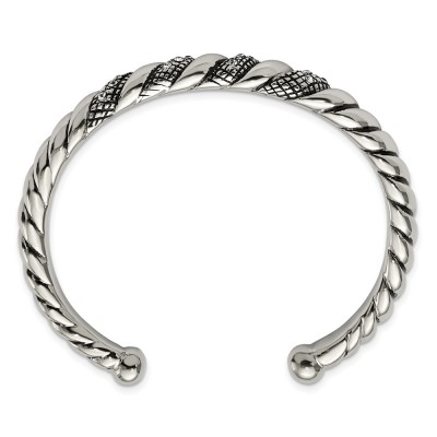 Stainless Steel Polished and Antiqued w/Crystal Cuff Bangle